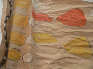 Most books come with a long sheet of brown paper. We are going to create an interesting project that can be used in a display, worn as a costume, or just created as a project and take home fun piece for children.