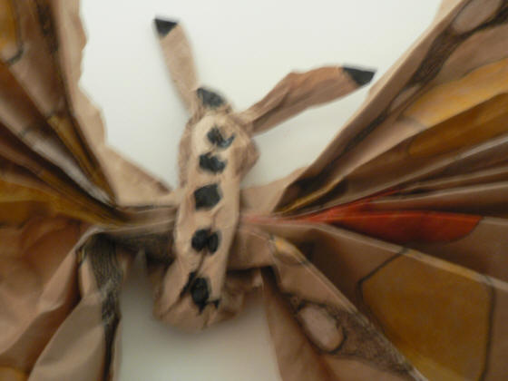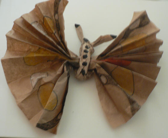 Fan Fold the long piece of decorated packing material. Tie the "body" around the center and adjust it the ends to resemble butter fly feelers. Paint the body.