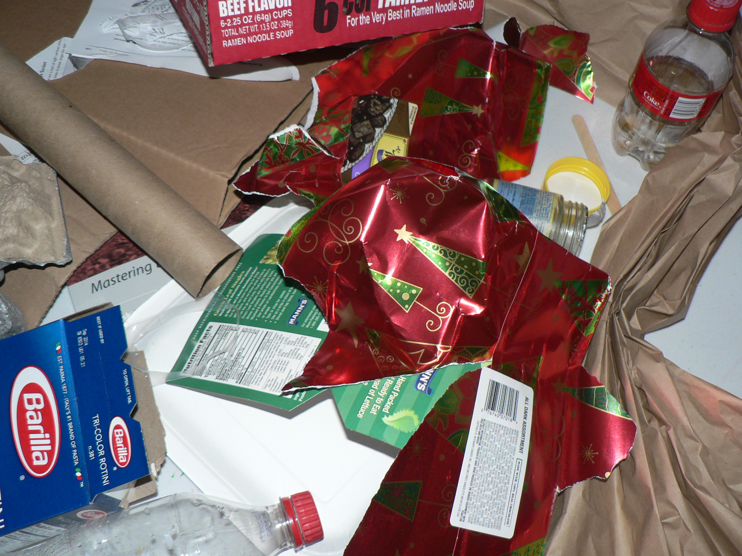 Another helpful material in the discarded pile is brown packing material. Paper bags are also useful in creating projects.