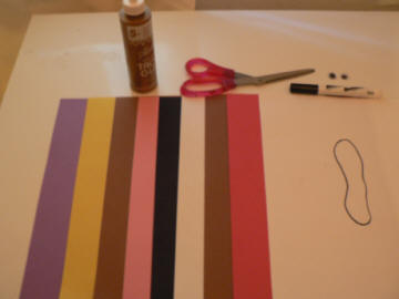Students will love the first step. You are going to be the first participate. That's right, the teacher! Wear flats today if you are a woman because you will be taking your shoe off and tracing it. You will need 2 of these. You will also need a tracing of everyone's hand-including yours. Draw it onto various colored construction paper. Use people colors along with turkey colors. Next, glue the feet patterns you made from your shoes together. Create the head and body of the turkey. Next, using the patterns as a guide give your turkey feet, a hat, and a gobbler. Glue the eyes. Turn the turkey over and glue the hands. Overlap (5) to create a full feathered turkey. Students can include names, or things that the students individual thankful thoughts prior to the "feathers" being applied.