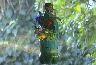 Jacqueline from Australia writes. . .I'm a mum and I need help teach- ing art to my son. His creativity in art is appalling. I'm not good at art myself. Could you please help by giving us some ideas. My son is in Grade One. Thank you so much Jacqueline. Your question reminds me of the importance of defining "what is art," and the importance of developing an appreciation and enjoyment of art in children that will last their entire lives. My understanding of art and creativity comes from many sources. For instance, when I was a student at the University of California, San Diego, I studied with a professor who had earlier originated the "Happenings," movment. His name is Allan Kaprow and his theories stressed the importance of the intermingling of life and art. I interpret his theories and other artists (from various historical styles) to place an importance on the process of creating art. This idea is especially important for children. In working with groups of children I sometimes notice that they will freely want to give up the object that they have made after the activity is over. For them, often times it is the enjoyment of creating, and the positive input that surrounds it that is the rewarding experience. Especially important to children is positive reinforcement. Art should be an enjoyable experience that builds confidence. I have taught adults who actually stopped their art development in grade school because a teacher told them they were not an artist. I would introduce your son to the many artists throughout history that celebrate their differences and styles. I would let him know that there is no right or wrong to art. There are a number of simple exercises that will help to develop creativity and skill. Try these and if there are others that would like to give some suggestions please send them and I will post them on this site. EXERCISES TO BUILD CREATIVITY 1. Ask your child to create a self-image collage using old magazines, or found objects. 2. Find a picture in a magazine of a person looking straight forward. Cut the photograph in half and glue it to a sheet of paper. Ask your child to complete the other half by duplicating the photograph. 3. Turn a photograph upside down and draw it. 4. Create cartoon figures from basic shapes-circles, squares, rectangles, triangles etc. 5. Copy an artist drawing such as a Rembrandt, Leonardo da Vinci, or van Gogh. At the top of the page you will find a RECYCLED BIRD PROJECT that is simple to create and fun. Here are the directions. Materials Needed: Empty Soda Bottle Paint Decorative Bird Flowers Craft Stick Moss Jute Glue Gun Glue Stick X-acto Knife Masking Tape THIS IS A PROJECT THAT NEEDS ADULT SUPERVISION. Activity: *Empty contents of plastic water or soda bottle. *Adults should cut a 2" x 2" window in the center of the bottle and cover rough edges with masking tape. *Paint a landscape or other scenes on the outside of the bottle. *Glue craft stick (or twig) to the back of bottle at the inside center. *Attach flowers to outside of bottle. *Glue jute string to top of lid. *Glue flower to bird's mouth. *Hang in your favorite window. SUSAN FROM CANADA WRITES. . ."I think the bird house idea is great and I will be looking forward to other exciting projects especially for grade one students as I teach grade one and would love lots of ideas for recycled materials such as paper towel rolls, toilet paper rolls, styrofoam meat trays, empty cans of all sizes, boxes (food kind), etc." Thanks, Susan THANK YOU FOR THE POSITIVE COMMENTS SUSAN AND FOR THE OPPORTUNITY OF FINDING SOME FRESH IDEAS OUT THERE FOR THOSE GOOD OLE CARDBOARD & STYROFOAM RECYCLABLES. YOU WILL FIND SOME SUGGESTIONS BELOW AND I'M SENDING AN EMERGENCY CALL OUT THERE FOR ANY REALLY GOOD, FUN, INEXPENSIVE IDEAS. I'LL BE TEACHING A WORKSHOP FOR ART TEACHERS NEXT WEEK AT UCSD AND I'LL ASK THEM TO HELP. KEEP WATCHING AND SENDING THOSE PROJECT IDEAS & ART QUESTIONS. Paper Towel Magic Flute 1. You'll need a paper towel roll (the thinner ones work a little better for this project). 2. Punch 3 holes in the top of the paper towel roll. (THIS IS AN ADULT SUPERVISED PROJECT) Place a small sheet of wax paper over one end of the paper towel, and wrap a rubber band around it, making a tight fit, so that the wax paper will stay in place. 3. Children should paint the outside of the flute. There are some good children's books about flutes that could be read prior to the art exercise. 4. Now, the flute is ready to be "played". Children should hum into the roll and cover l, 2, or 3 openings with their flute. They will see the differences in tones as they move their fingers around the top of the flute openings. 5. They love this one, and it is so inexpensive. Have Fun! Paper Towel Roll and Cereal Box Guitar That's right! It is so easy, just glue the paper towel roll to the back of the box. Glue the empty box lid together, and cut a round hole, and attach yarn or plastic craft string for the music strings, tie them at the end around brads. Decorate the guitar with a "History of American Guitar" music collage. Thin Cardboard Picture Package Frames These really do make excellent frames, and it is good to turn the frame into a collage about themselves or even a found object project. Real object can be glued to the cardboard frame. The frame is created by first cutting 2 rectangular shapes and then an inset 2" x 2" square. You can introduce artists Picasso and Braque at this time also. You could also use the advertising side of the cardboard packaging. Coca Cola 12 pack boxes are good, and it is a good opening to talking about the Pop (no pun intended) artists. Decoupage Can Planters Before the children decoupage the cans you can hammer a couple of openings in the bottom of the can and they will make a handy planter for their favorite flower. The decoupage could be about their favorite day, favorite book etc. Tin Can Art Older children can create tin can art, by hammering designs into the can with a long 